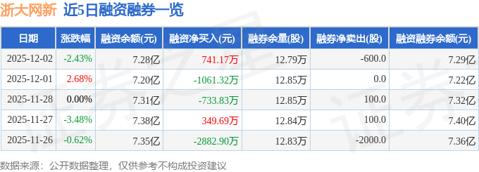浙大网新融资融券信息显示,融资方面,当日融资买入5726.64万元,融资偿还4985.47万元,融资净买入741.17万元。融券方面,融券卖出100.0股,融券偿还700.0股,融券余量12.79万股,融券余额138.64万元。融资融券余额7.29亿元。