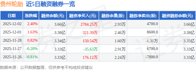 贵州轮胎融资融券信息显示,融资方面,当日融资买入4754.08万元,融资偿还1969.84万元,融资净买入2784.25万元,连续3日净买入累计3256.18万元。融券方面,融券卖出4900.0股,融券偿还200.0股,融券余量2.93万股,融券余额14.97万元。融资融券余额3.66亿元。