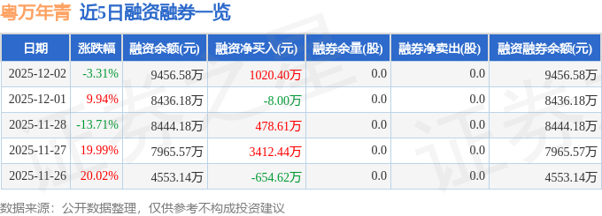 证券之星消息,截至2025年12月2日收盘,粤万年青(301111)报收于24.28元,下跌3.31%,换手率15.9%,成交量25.44万手,成交额6.11亿元。