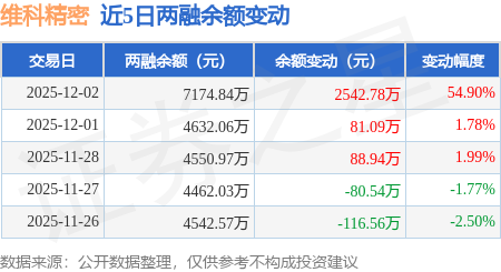 证券之星消息,12月2日,维科精密(301499)融资买入4245.76万元,融资偿还1702.97万元,融资净买入2542.78万元,融资余额7174.84万元,近3个交易日已连续净买入累计2712.81万元。