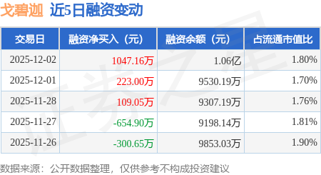 证券之星消息,12月2日,戈碧迦(920438)融资买入1982.7万元,融资偿还935.55万元,融资净买入1047.16万元,融资余额1.06亿元,近3个交易日已连续净买入累计1379.21万元。