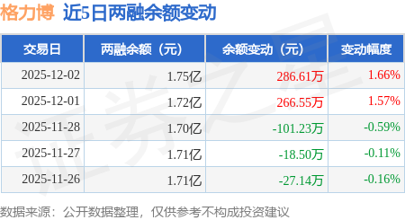 证券之星消息,12月2日,格力博(301260)融资买入1143.23万元,融资偿还856.59万元,融资净买入286.64万元,融资余额1.75亿元。