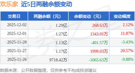 证券之星消息,12月2日,欢乐家(300997)融资买入6577.33万元,融资偿还6308.7万元,融资净买入268.63万元,融资余额1.29亿元,近20个交易日中有12个交易日出现融资净买入。