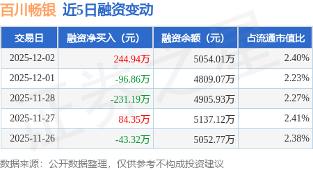 证券之星消息,12月2日,百川畅银(300614)融资买入314.5万元,融资偿还69.56万元,融资净买入244.94万元,融资余额5054.01万元。