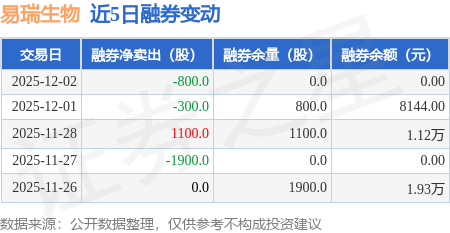 证券之星消息,12月2日,易瑞生物(300942)融资买入489.42万元,融资偿还316.68万元,融资净买入172.74万元,融资余额8147.05万元。