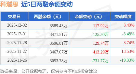 证券之星消息,12月2日,科瑞思(301314)融资买入508.65万元,融资偿还390.73万元,融资净买入117.92万元,融资余额3589.43万元,近20个交易日中有11个交易日出现融资净买入。