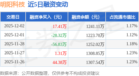 证券之星消息,12月2日,明阳科技(920663)融资买入27.88万元,融资偿还10.47万元,融资净买入17.41万元,融资余额1241.11万元,近20个交易日中有12个交易日出现融资净买入。