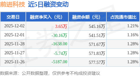 证券之星消息,12月2日,前进科技(920679)融资买入20.56万元,融资偿还16.91万元,融资净买入3.65万元,融资余额545.16万元。