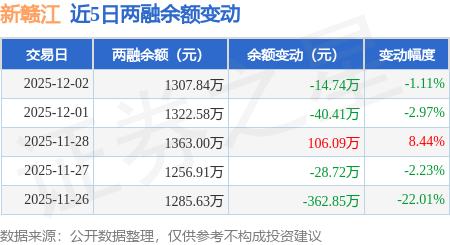 证券之星消息,12月2日,新赣江(920367)融资买入128.34万元,融资偿还143.08万元,融资净卖出14.74万元,融资余额1307.84万元。