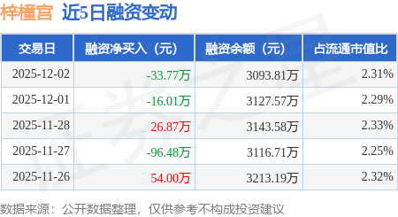 证券之星消息,12月2日,梓橦宫(920566)融资买入152.3万元,融资偿还186.07万元,融资净卖出33.77万元,融资余额3093.81万元。