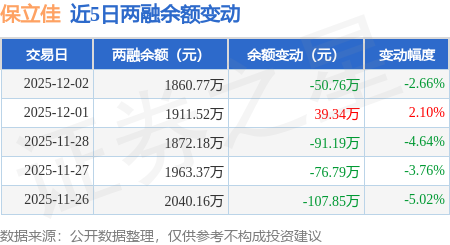 证券之星消息,12月2日,保立佳(301037)融资买入160.59万元,融资偿还211.34万元,融资净卖出50.76万元,融资余额1860.62万元。