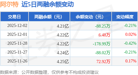 证券之星消息,12月2日,阿尔特(300825)融资买入481.52万元,融资偿还569.77万元,融资净卖出88.25万元,融资余额4.21亿元。