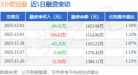 证券之星消息,12月2日,XD宏远股(920018)融资买入38.24万元,融资偿还129.17万元,融资净卖出90.92万元,融资余额1423.94万元。