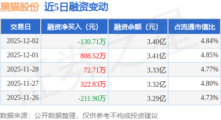 证券之星消息,12月2日,黑猫股份(002068)融资买入604.47万元,融资偿还735.18万元,融资净卖出130.71万元,融资余额3.4亿元。