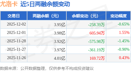 证券之星消息,12月2日,尤洛卡(300099)融资买入1089.71万元,融资偿还1347.89万元,融资净卖出258.17万元,融资余额3.95亿元。