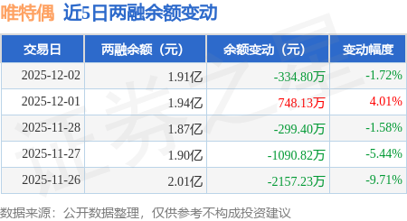 证券之星消息,12月2日,唯特偶(301319)融资买入4941.81万元,融资偿还5276.61万元,融资净卖出334.8万元,融资余额1.91亿元。