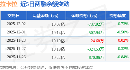 证券之星消息,12月2日,拉卡拉(300773)融资买入1749.43万元,融资偿还2471.76万元,融资净卖出722.34万元,融资余额10.04亿元。