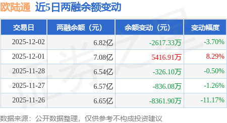 证券之星消息,12月2日,欧陆通(300870)融资买入9313.51万元,融资偿还1.19亿元,融资净卖出2612.86万元,融资余额6.8亿元。
