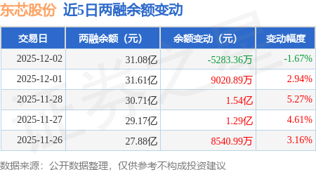 证券之星消息,12月2日,东芯股份(688110)融资买入2.8亿元,融资偿还3.32亿元,融资净卖出5213.02万元,融资余额30.99亿元,近20个交易日中有12个交易日出现融资净买入。