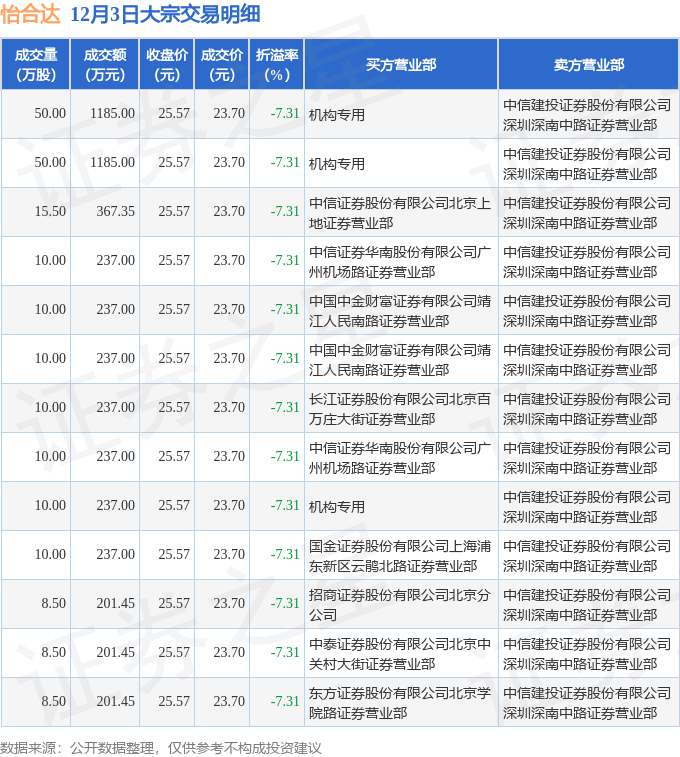 证券之星消息,12月3日怡合达发生大宗交易,交易数据如下: