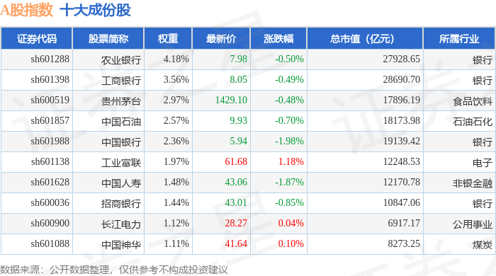 A股指数(000002)十大成份股详情如下: