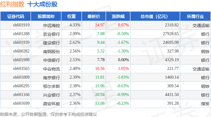 红利指数(000015)十大成份股详情如下:
