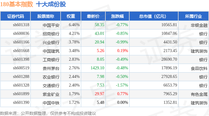 证券之星消息,12月3日,180基本(000053)指数报收于12447.81点,跌0.42%,成交1830.98亿元,换手率0.36%。当日该指数成份股中,上涨的有66家,华润微以7.94%的涨幅领涨,下跌的有105家,传音控股以8.23%的跌幅领跌。