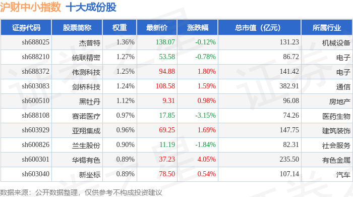 沪财中小(000091)指数十大成份股详情如下: