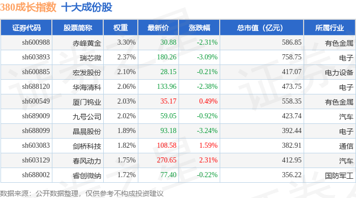 380成长(000117)指数十大成份股详情如下: