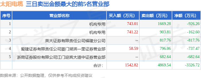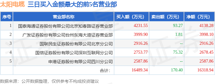 证券之星消息,沪深交易所2025年12月3日公布的交易公开信息显示,太阳电缆(002300)因连续三个交易日内,涨幅偏离值累计达到20%的证券登上龙虎榜。此次是近5个交易日内第1次上榜。