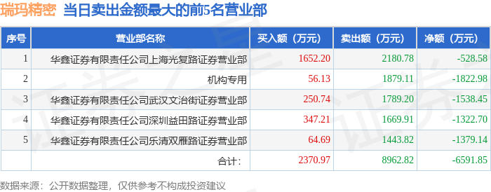 证券之星消息,沪深交易所2025年12月3日公布的交易公开信息显示,瑞玛精密(002976)因日跌幅偏离值达到7%的前5只证券登上龙虎榜。此次是近5个交易日内第3次上榜。