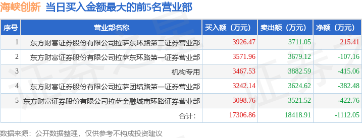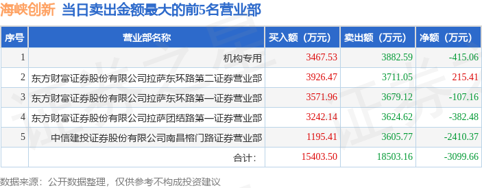从龙虎榜公布的当日买卖数据来看,机构合计净卖出415.06万元。