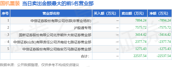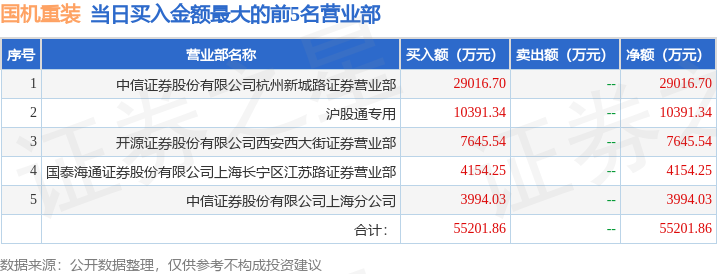 证券之星消息,沪深交易所2025年12月3日公布的交易公开信息显示,国机重装(601399)因有价格涨跌幅限制的日收盘价格涨幅偏离值达到7%的前五只证券登上龙虎榜。此次是近5个交易日内第1次上榜。