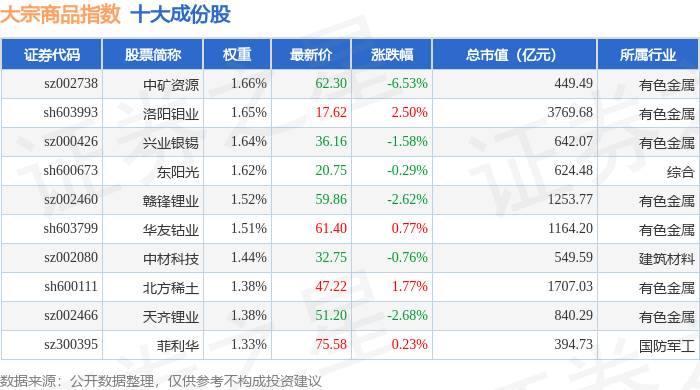 大宗商品(000979)指数十大成份股详情如下: