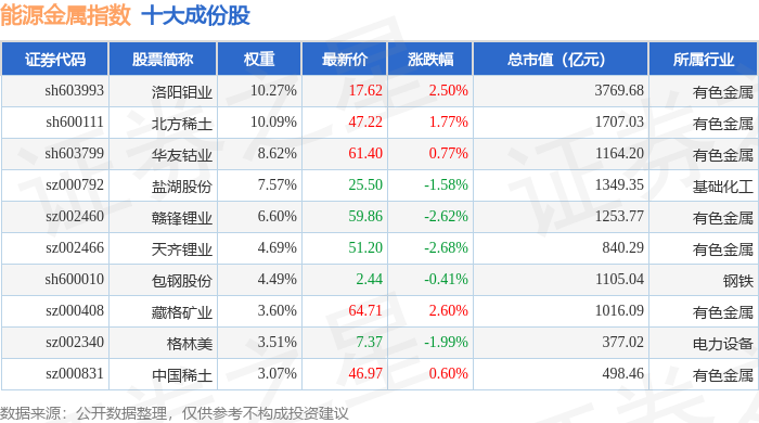 近10日内能源金属(399366)指数成份股做了调整,新纳入了3只股票。
