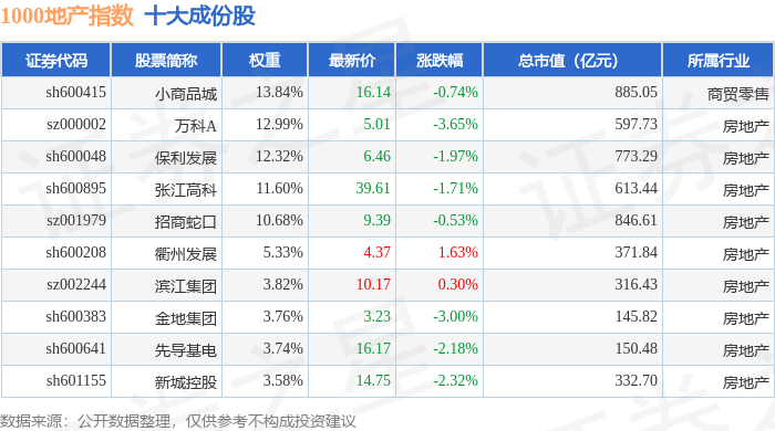 证券之星消息,12月3日,1000地产(399367)指数报收于2604.39点,跌1.43%,成交69.88亿元,换手率1.08%。当日该指数成份股中,上涨的有3家,衢州发展以1.63%的涨幅领涨,下跌的有15家,万科A以3.65%的跌幅领跌。