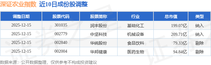 近10日内深证农业(399669)指数成份股做了调整,新纳入了2只股票,剔除了2只股票。