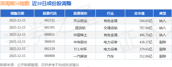 近10日内深周期50(399670)指数成份股做了调整,新纳入了3只股票,剔除了3只股票。