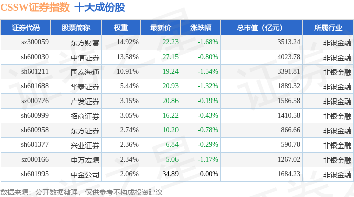 近10日内CSSW证券(399707)指数成份股做了调整,新纳入了1只股票。