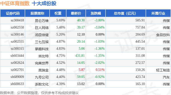 近10日内中证体育(399804)指数成份股做了调整,新纳入了5只股票,剔除了1只股票。