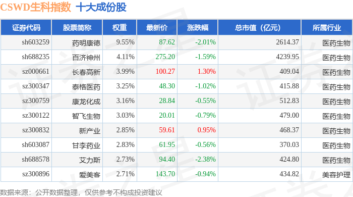 资金流向方面,CSWD生科(399993)指数成份股当日主力资金净流出合计13.0亿元,游资资金净流入合计2.58亿元,散户资金净流入合计10.86亿元。成份股资金流向详情见下表: