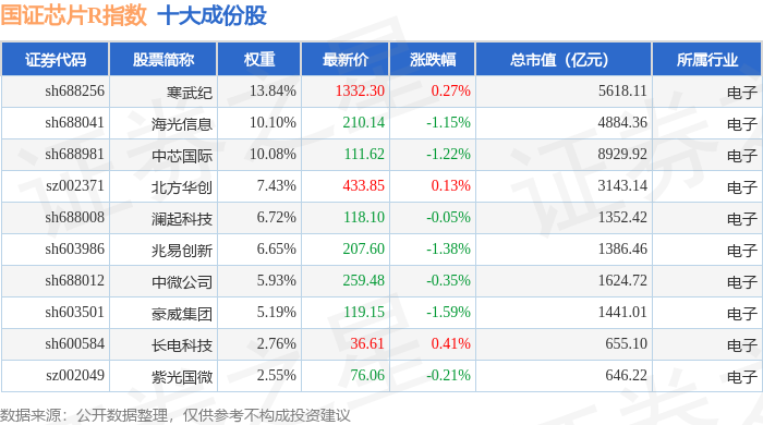 近10日内国证芯片R(480017)指数成份股做了调整,新纳入了1只股票。
