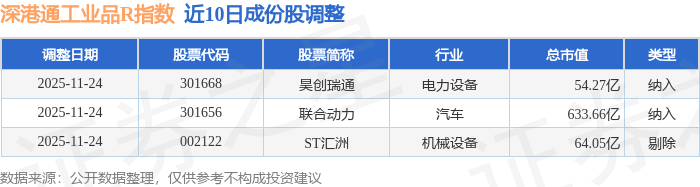 近10日内深港通工业品R(483069)指数成份股做了调整,新纳入了2只股票,剔除了1只股票。