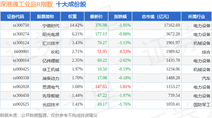 深港通工业品R(483069)指数十大成份股详情如下: