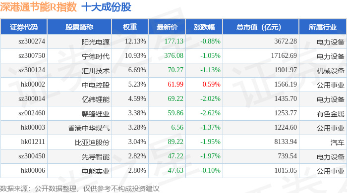证券之星消息,12月3日,深港通节能R(483085)指数报收于2775.12点,跌1.27%,成交522.81亿元,换手率0.71%。当日该指数成份股中,上涨的有6家,中国广核以1.32%的涨幅领涨,下跌的有42家,天华新能以5.04%的跌幅领跌。