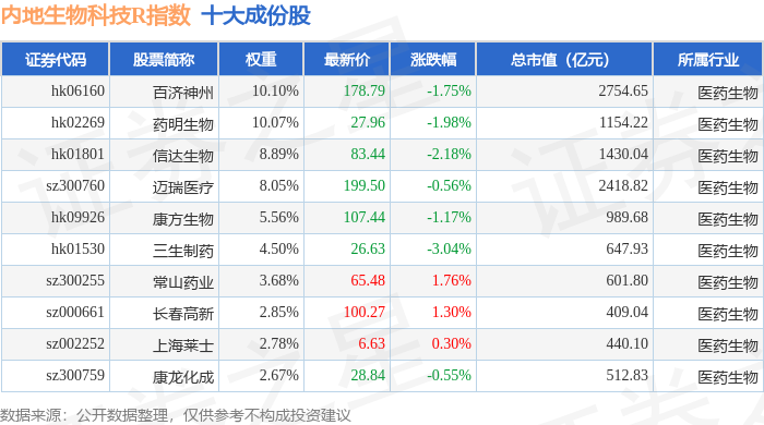 证券之星消息,12月3日,内地生物科技R(483101)指数报收于3318.88点,跌1.01%,成交128.87亿元,换手率0.97%。当日该指数成份股中,上涨的有16家,亿帆医药以6.11%的涨幅领涨,下跌的有32家,晶泰控股以6.13%的跌幅领跌。