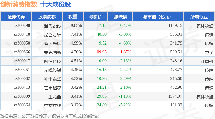 近10日内创新消费(970041)指数成份股做了调整,新纳入了3只股票,剔除了3只股票。