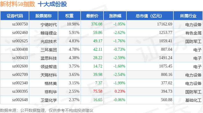 近10日内新材料50(970042)指数成份股做了调整,新纳入了1只股票,剔除了1只股票。