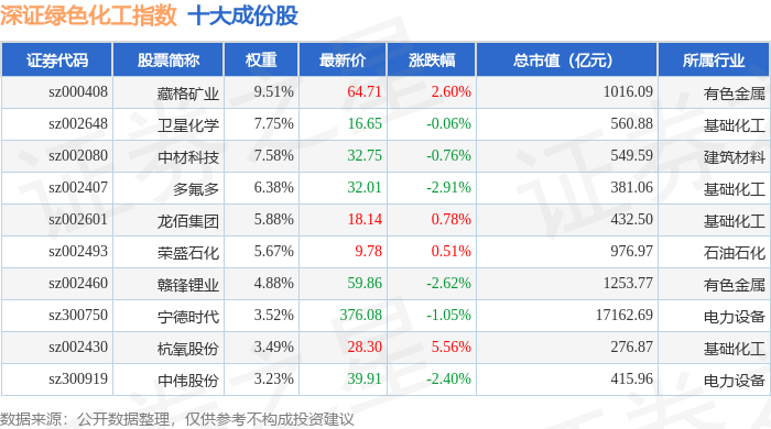 证券之星消息,12月3日,深证绿色化工(970076)指数报收于1618.16点,涨0.3%,成交351.35亿元,换手率2.03%。当日该指数成份股中,上涨的有23家,利安隆以10.03%的涨幅领涨,下跌的有26家,东岳硅材以4.1%的跌幅领跌。