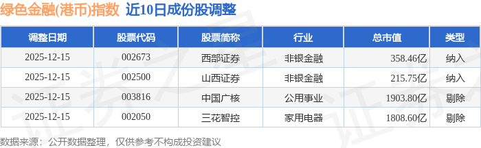 近10日内绿色金融(港币)(980053)指数成份股做了调整,新纳入了2只股票,剔除了2只股票。